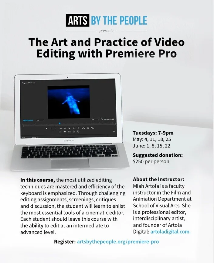 About the Instructor: Miah Artola is a faculty instructor in the Film and Animation Department at School of Visual Arts She is a professional editor, interdisciplinary artist, and founder of Artola Digital: artoladigital.com.